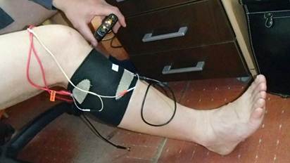 Figura 1 - Flexie dorsală (stimulare SPE) obţinută prin aplicarea stimulului electric cu electrozi tricotaţi